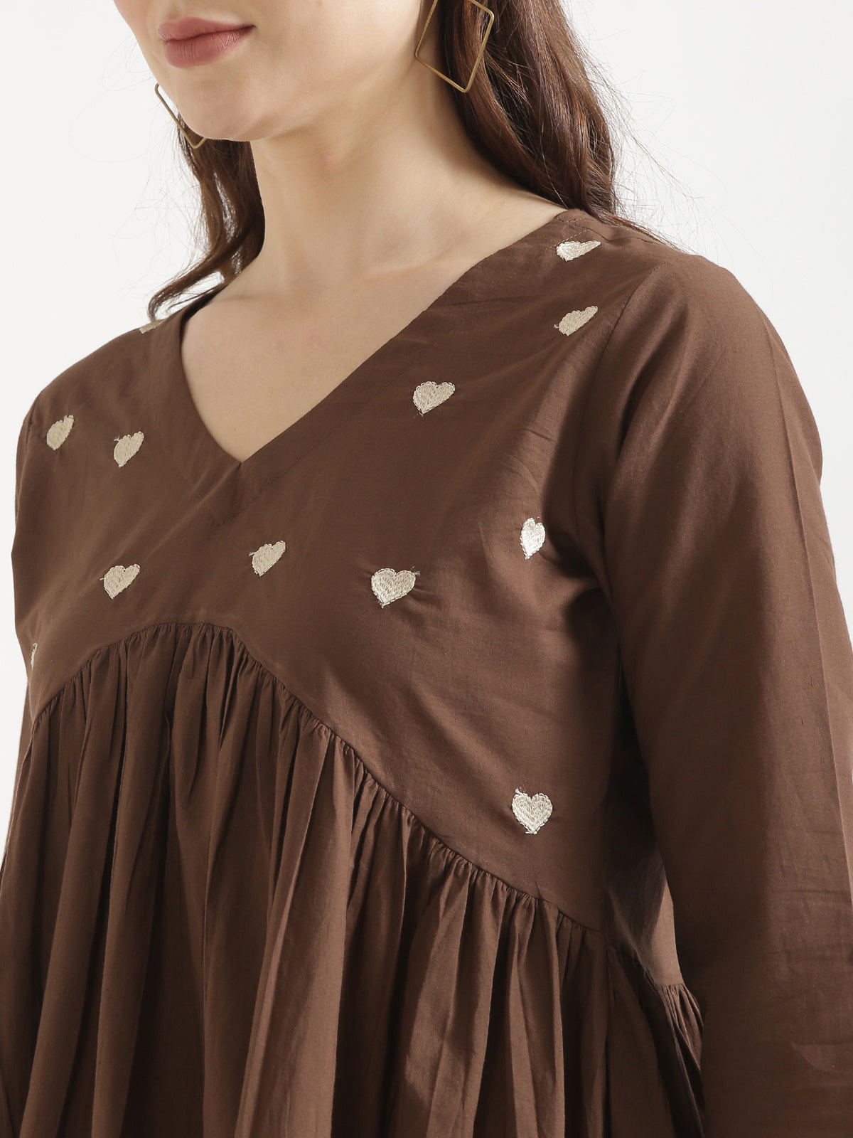 - Design Detail: Delicate white heart embroidery on the yoke