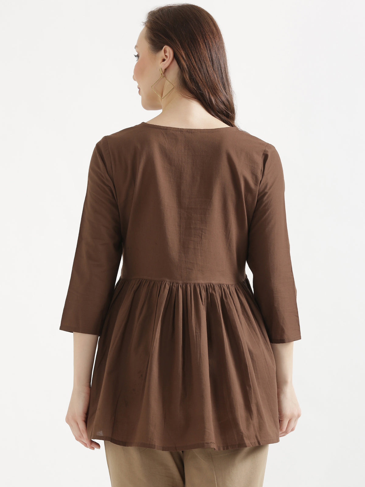 AARVI Mocha Brown Embroidered Cotton Short Top