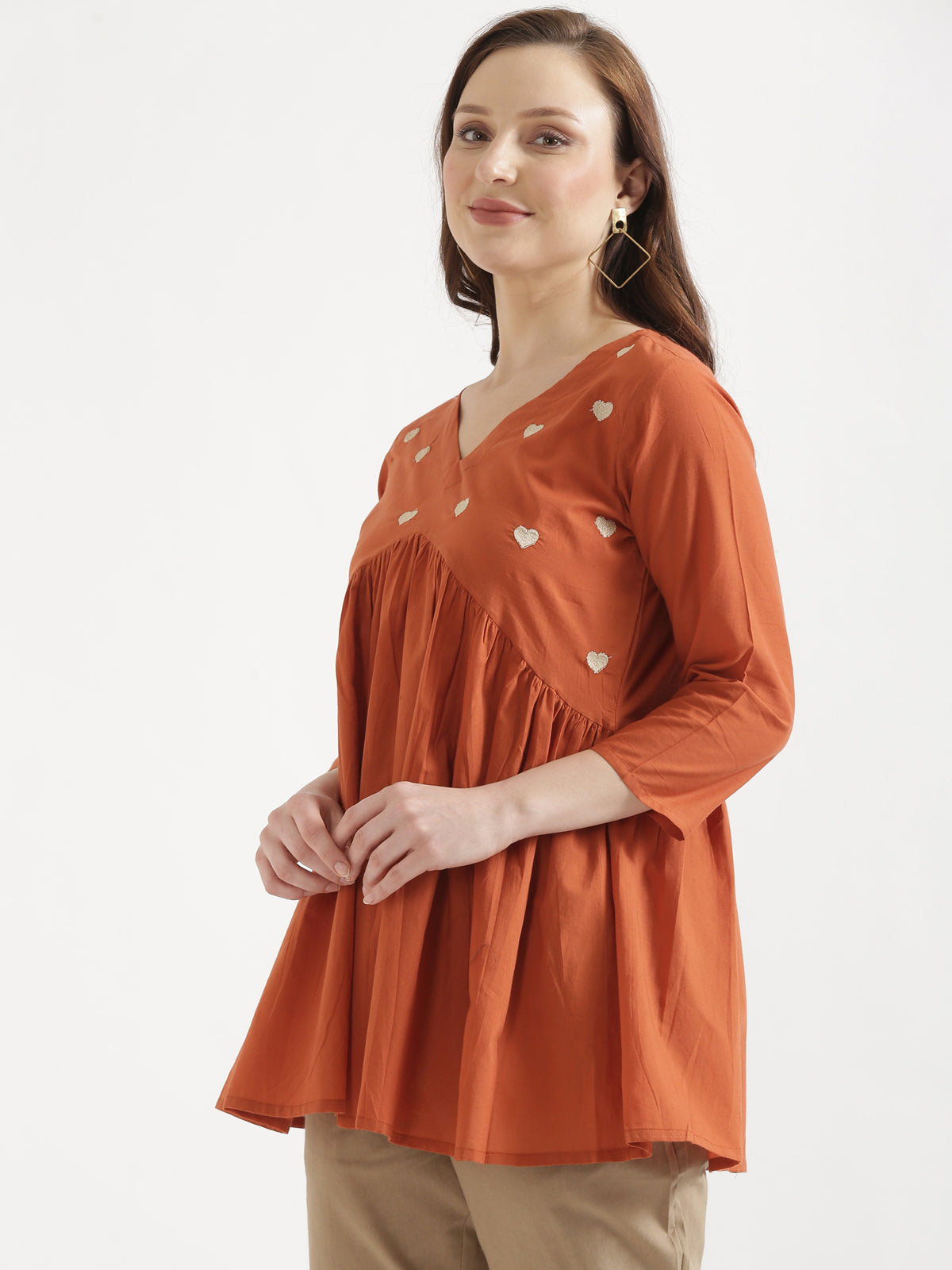 - Product Type: Heart Embroidered Pure Cotton Short Top / Short Kurti