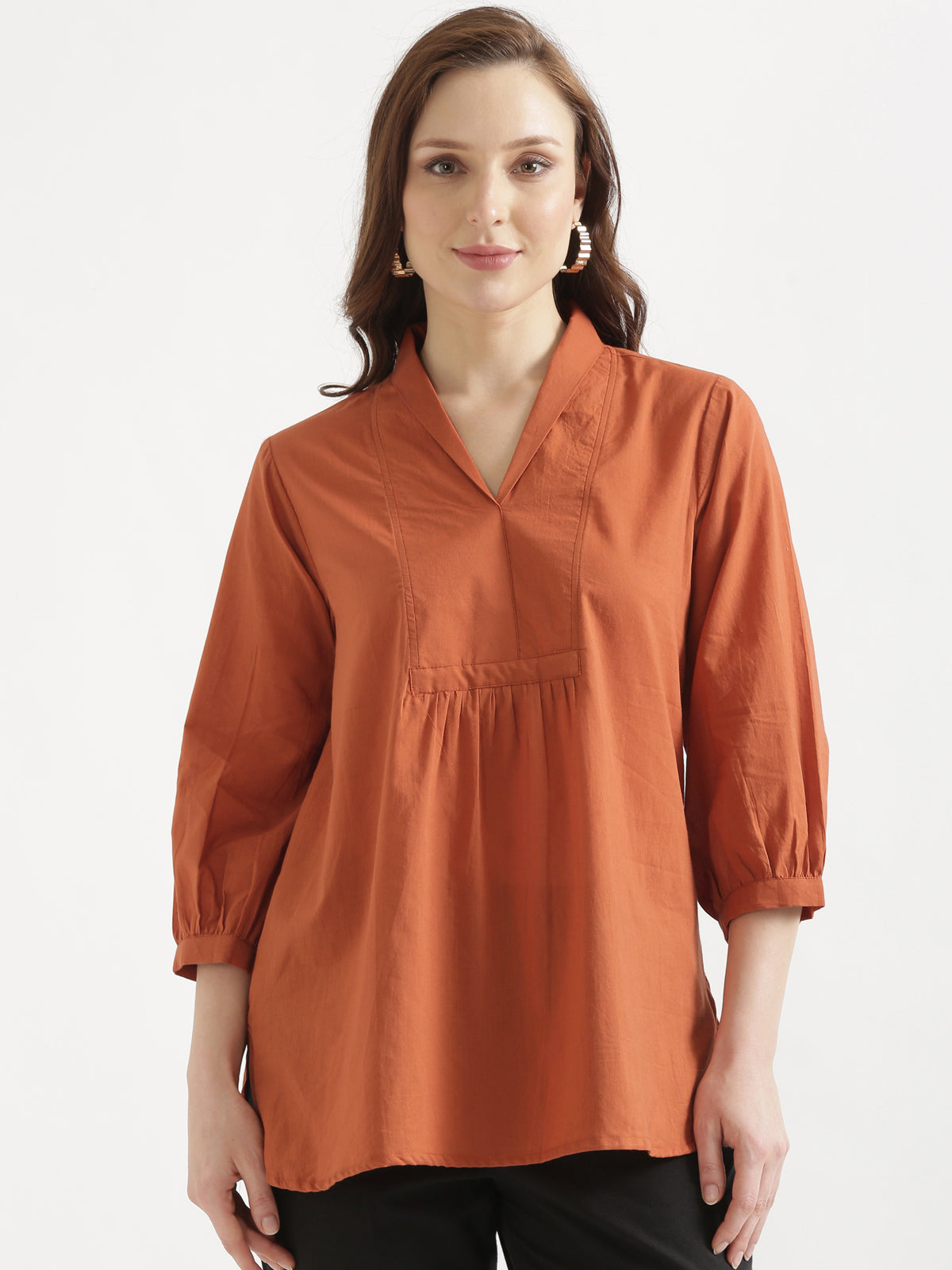 AIRA Rust V-Neck Cotton Short Top