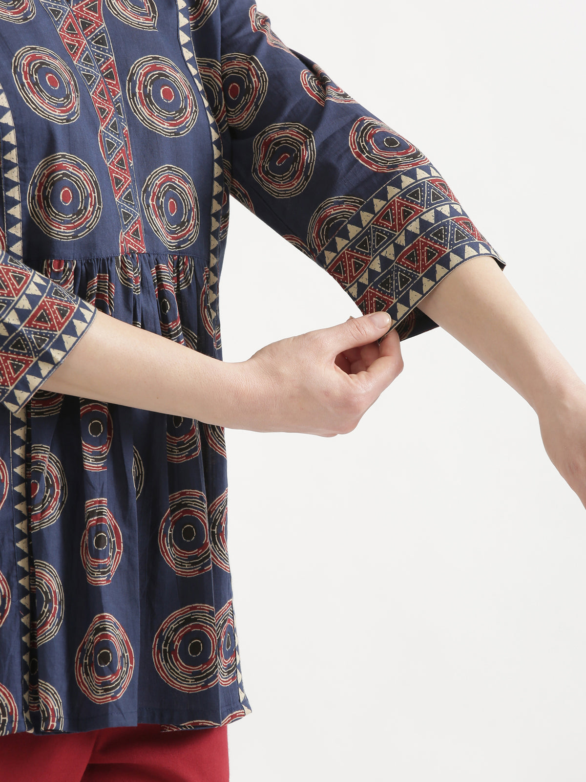 - Sleeves: 3/4th sleeves with cuff detailing