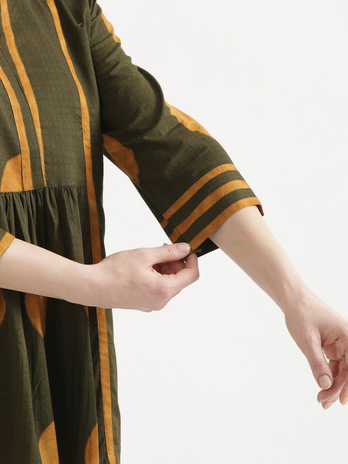 - Sleeves: 3/4th sleeves with cuff detailing