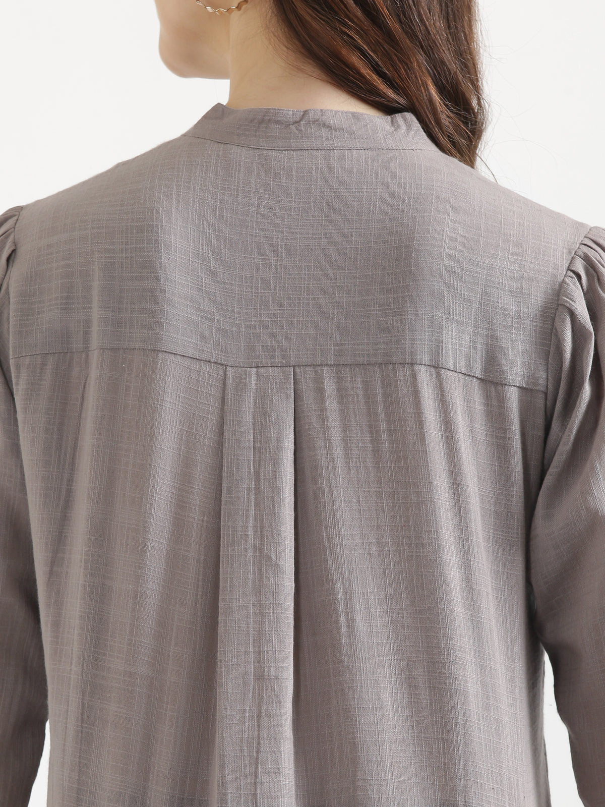 - Neckline: Smart V-neck with a clean front button placket for a polished, office-ready look