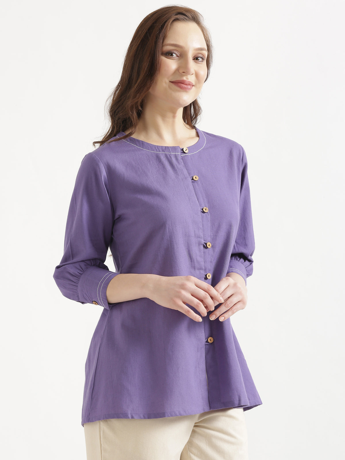 - Sleeves: 3/4th sleeves with subtle contrast stitching