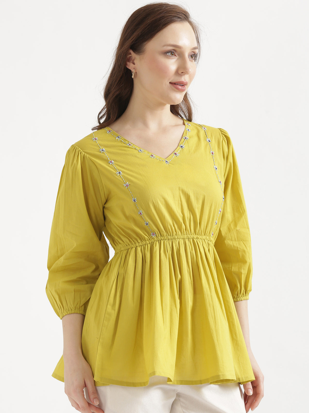 SUTRA Lemon Yellow Handwork Cotton Short Top